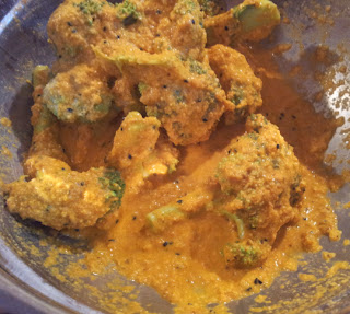 Surowe cząstki kalafiora/ brokuła itp. zanurzamy w cieście i wrzucamy na gorący głęboki olej.